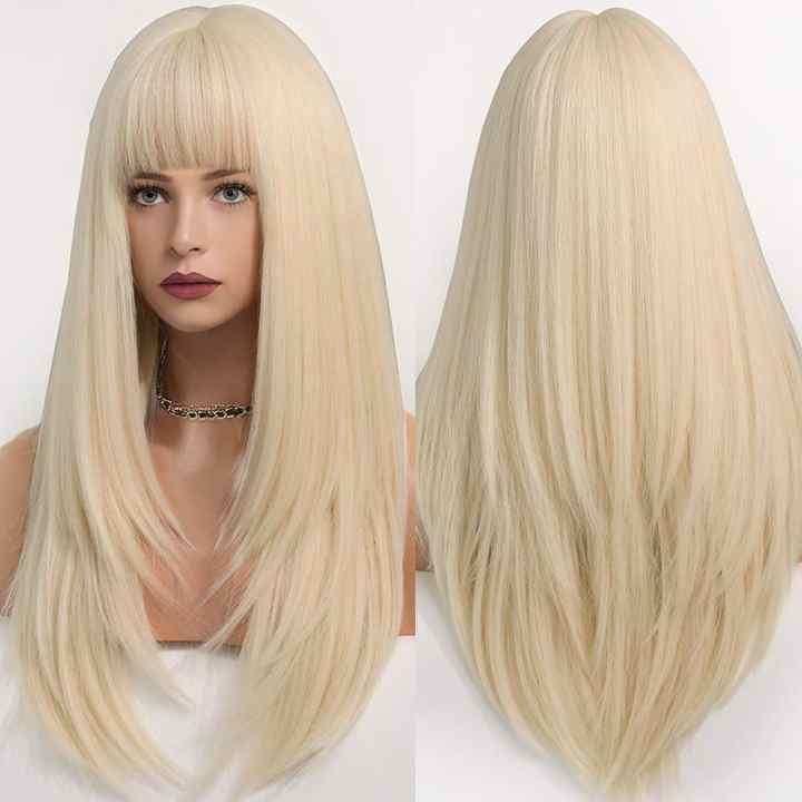 Wholesale 613 Long Blonde Wig With Bangs For Women Heat Resistant Fiber 25 Inch Layered Synthetic Hair Wigs For Daily Use From M Alibaba Com